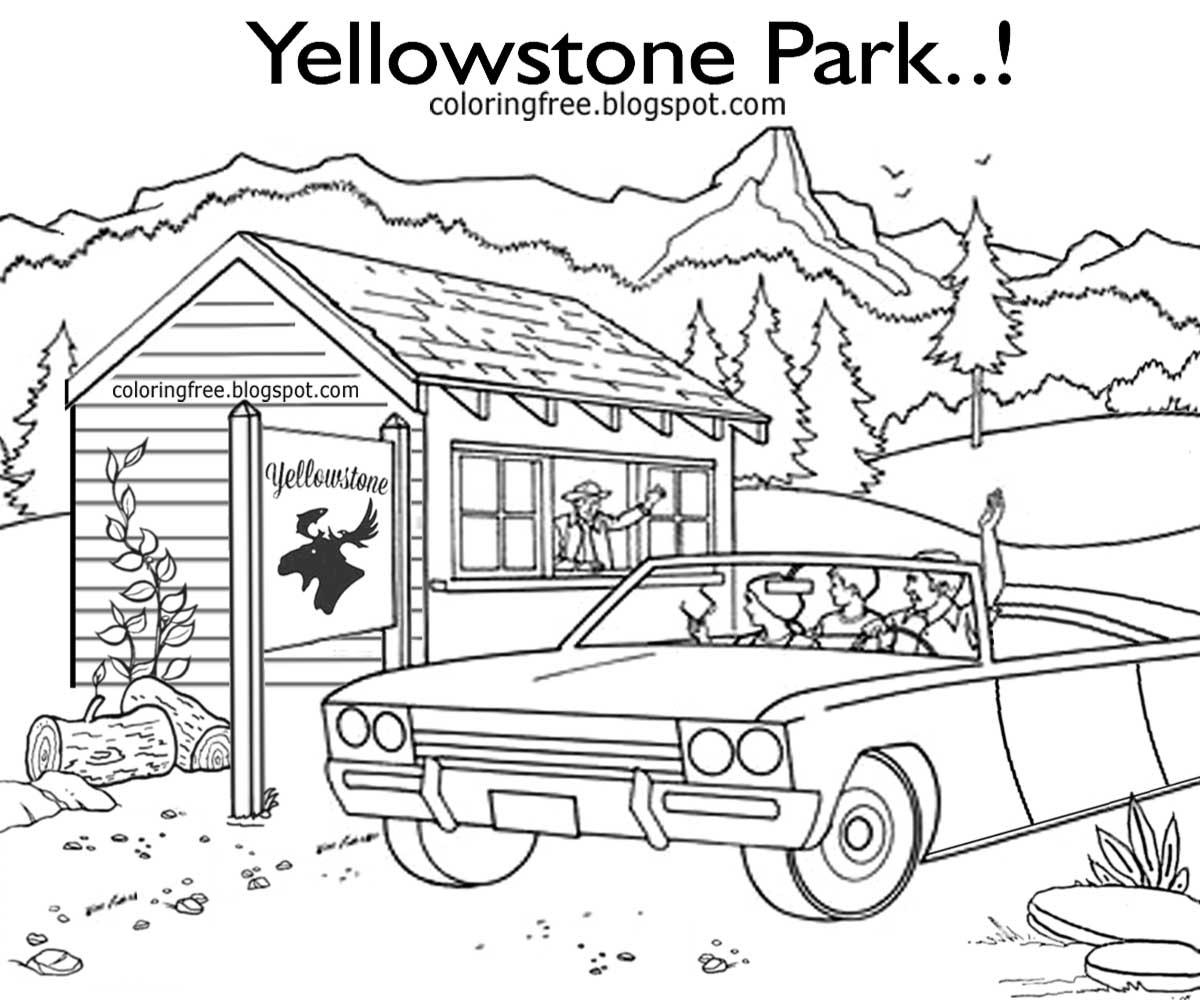 Printable Yellowstone Park Coloring American Wildlife Kids Drawings