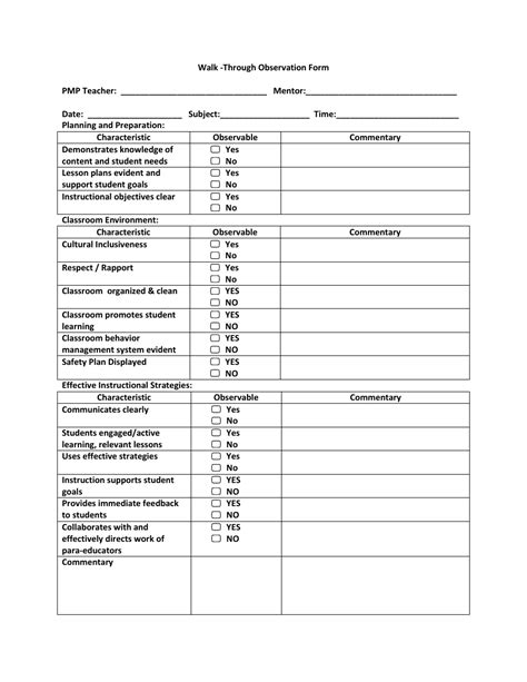 3-Minute Walkthrough Observation Form. (standing at the front of the room,. 1) what is the teacher doing?