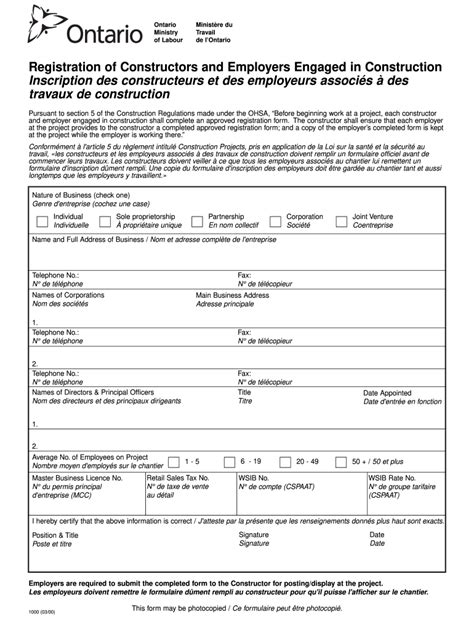 Form 1000 Ontario. Web under section 5 of the construction projects regulation, constructors and employers engaged in a construction project must complete a registration form (form 1000). Each constructor and employer engaged in a construction.