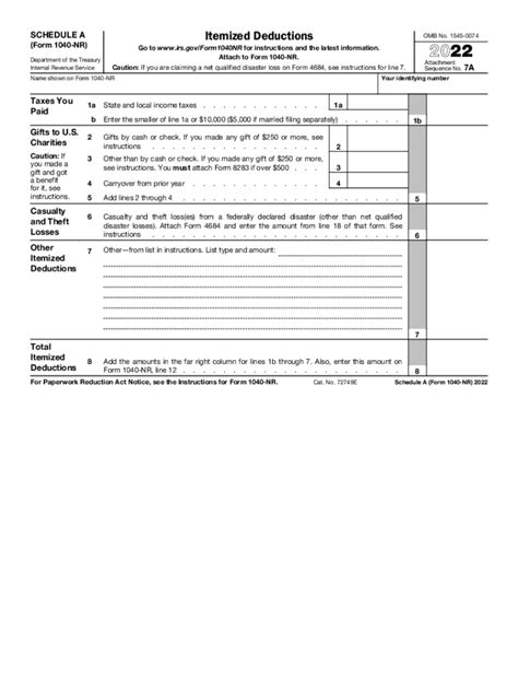 Form 1040Nr Schedule A. Go to www.irs.gov/form1040nr for instructions. Trade or business and to figure your capital gains and losses from sales or exchanges.