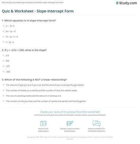 Slope intercept form quiz for 8th grade students. He uses a slope of 2 to graph another point. He draws a line through the.