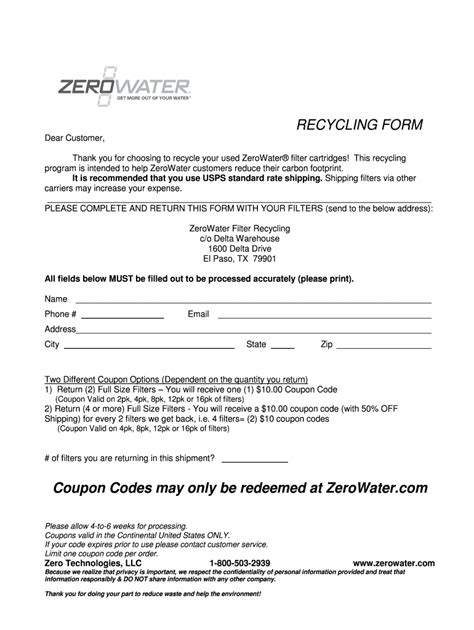 Zero Water Filter Recycling Form. Web you can fill out our recycling program form directly from your device. Web how to recycle water filters from zerowater.