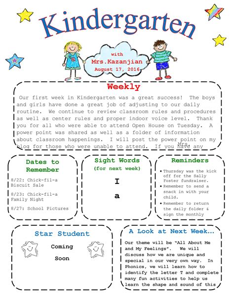 Kindergarten Newsletter Sample. Many teachers use newsletters to keep parents informed about classroom events.