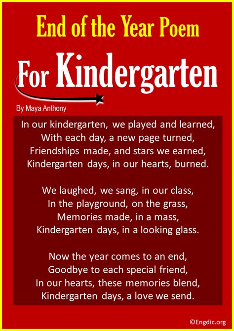 I print out the following poem for each student and place it in a. Web cute end of the year songs: Web end of the school year poems with free editable templates for many years i have used the following poems at the end of the school year. Here, you will find an end of year. This poem is a sweet. It’s that time of year when we rush to find cute end of the year songs and graduation poems. Web end of the year poems for kindergarten 1. Reminiscing about the fun and learning in kindergarten, this poem highlights the joyful.