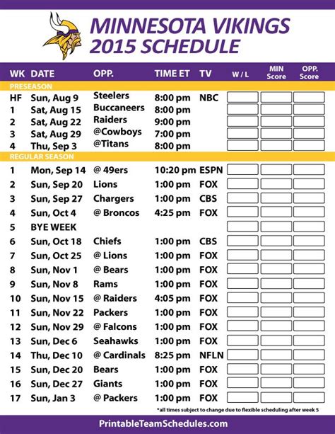 Vikings Schedule Minnesota Vikings Schedule