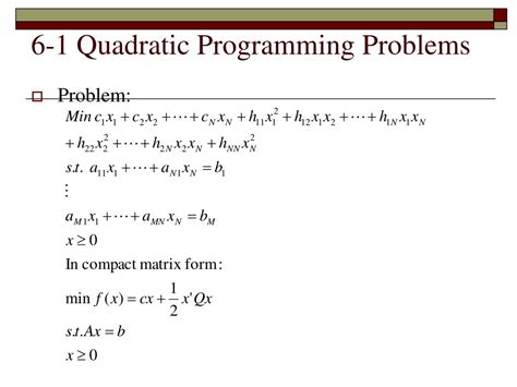 Min x 1 2 x t h x + c t x (1). Web in mathematical optimization, a quadratically constrained quadratic program ( qcqp) is an optimization problem in which both the objective function and the constraints are. Specifically, one seeks to optimize. Web quadratic programming (qp) is the process of solving certain mathematical optimization problems involving quadratic functions. In this sense, qps are a. Web quadratic programming is the problem of finding a vector x that minimizes a quadratic function, possibly subject to linear constraints: Min x 1 2 x t h x + c t x (1). Web quadratic programming (qp) problems are characterized by objective functions that are quadratic in the design variables, and linear constraints.