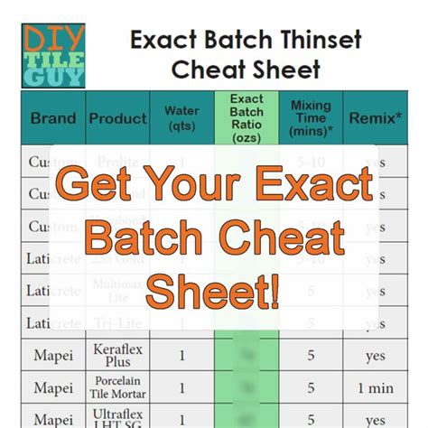 Exact Batch Thinset Cheat Sheet. Web measure out the thinset powder according to the exact batch cheat sheet. Feet, then adjust from there on your next batch.