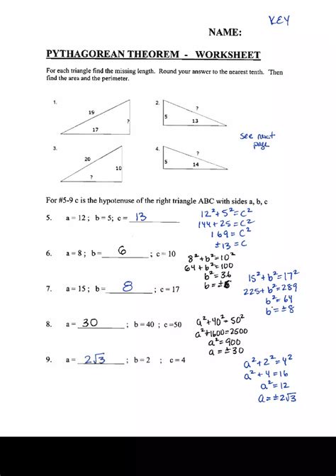 Pythagorean Theorem Sheet 1 Answer Key. 3 in z y x t? Web a short equation, pythagorean theorem can be written in the following manner: