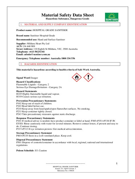 Safety Data Sheet Hand Sanitizer. Web safety data sheet gel hand sanitizer section 1. A gelled alcohol hand sanitizer with aloe for hand washing to decrease bacteria on the skin 2.