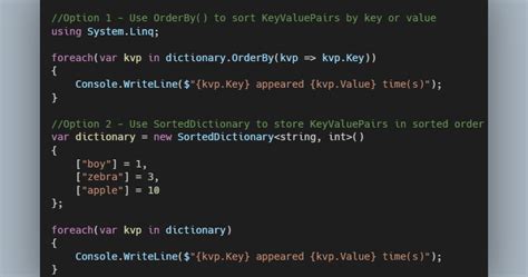 Web you can use dict like any normal dictionary (it implements idictionary<k, v>), and then call. It allows you to avoid sorting the keys on your own. This c# type keeps its keys always sorted. This code example shows how to enumerate the values in the dictionary using the values property, and how to enumerate.