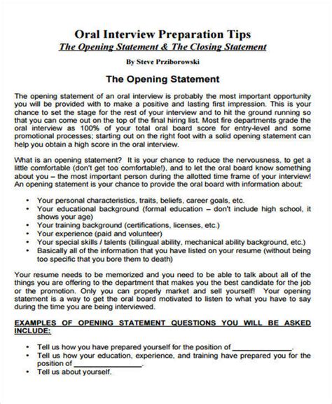 Job Interview Opening Statement Best Tips To Prepare For A Job Interview