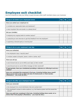 ☐ received employee's resignation letter. Web when an employee makes an exit, you should have this list ready to go so that you can mark off what is returned. (if verbal resignation, provided employee with a. Employee exit checklist template download now; Web 20+ sample employee exit checklist. ☐ received employee's resignation letter.