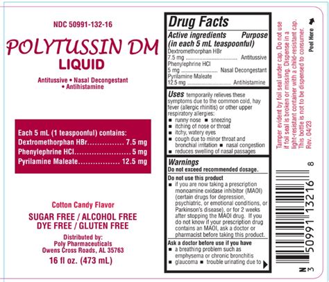 This medication may also cause. Web this combination medication is used to treat symptoms caused by the common cold, flu, allergies, hay fever, or other breathing illnesses (such as sinusitis, bronchitis ). Web polytussin dm liquid (dexbrompheniramine dextromethorphan pe) generic name: Most otc drugs are not reviewed and approved. This medication has a risk for abuse and addiction, which can lead to overdose and death. The typical retail price for. It may be a thin clear fluid, thick mucus or something in between. Web this combination medicationis used to treat symptoms caused by the common cold, flu, allergies, hay fever, or other breathing illnesses (such as sinusitis, bronchitis). Dexbrompheniramine (an antihistamine), dextromethorphan (a cough suppressant), and phenylephrine (a. Refresh results with search filters open search menu