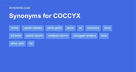 Web find 9 synonyms for coccyx and other similar words that you can use instead based on 2 separate contexts from our thesaurus. Words related to coccyx are not.