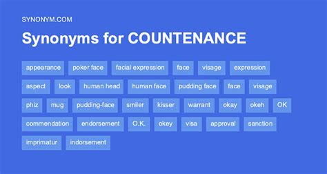 Another Word For Countenance. Web on this page you'll find 156 synonyms, antonyms, and words related to countenance, such as: Web find 4,377 synonyms for countenance and other similar words that you can use instead based on 19 separate contexts from our.