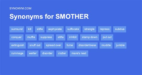 Another Word For Smother. Web find 2,359 synonyms for smother and other similar words that you can use instead based on 15 separate contexts from our thesaurus. Strangle, choke, stifle, suffocate, drown, destroy, throttle, slay;