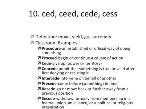 Ced Root Word Meaning. “go,” for instance, present in the words precede and recede, has variant spellings of cess and ceed, which also. Web when you accede to a demand or proposal, you agree to it, especially after first disagreeing with it.