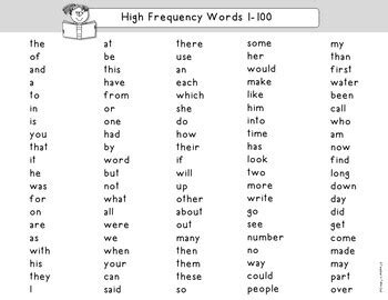 Fry High Frequency Word List. The fry word list or instant words are widely accepted to contain the most used.