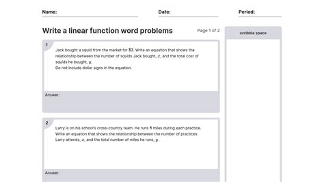 Linear Function Examples Word Problems