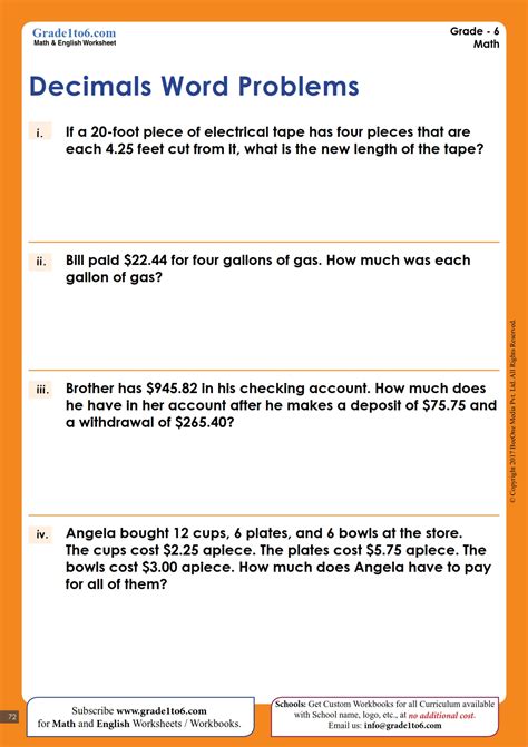 Multiplying Decimals Word Problems Worksheets Decimal —