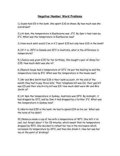 Negative Number Word Problems. Students will practice with money, real. Web learn how to solve word problems involving negative numbers with these worksheets.