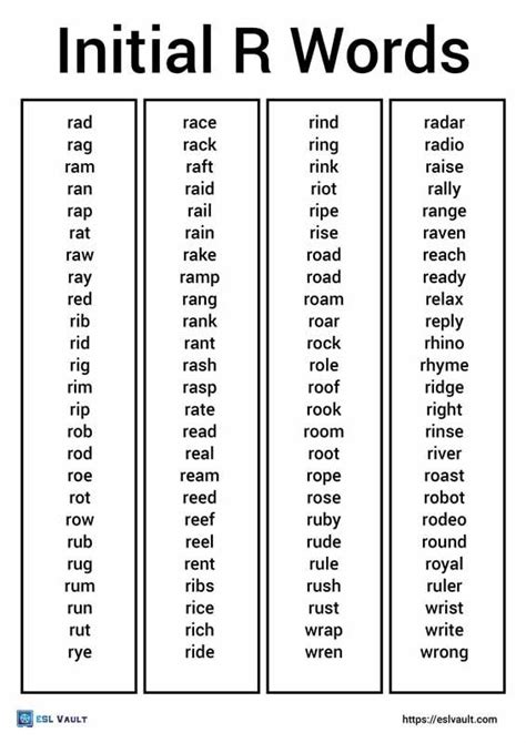 R Word Lists. Web 1000+ r words, phrases, sentences, and reading passages grouped by place, syllable, & blend as promised here are the words for your unlimited use. If you know others who can use our lists.