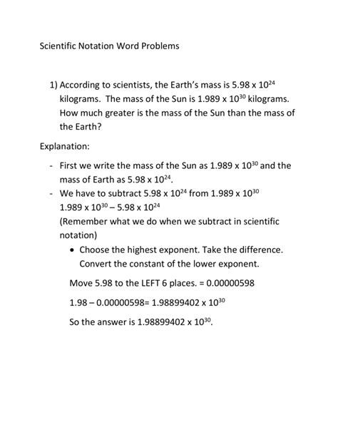 Incredible Scientific Notation Word Problems Worksheet 2023 Hugh