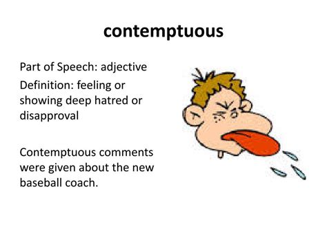 What Does The Word Contemptuously Mean. In a way that shows strong dislike or a lack of respect for someone or something: Web add to word list.