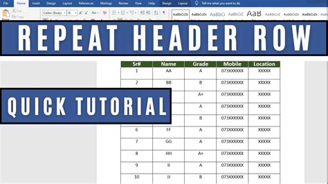 how to apply header row repeat in ms word 2010(microsoft word) for